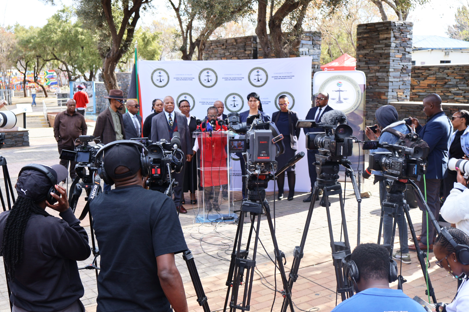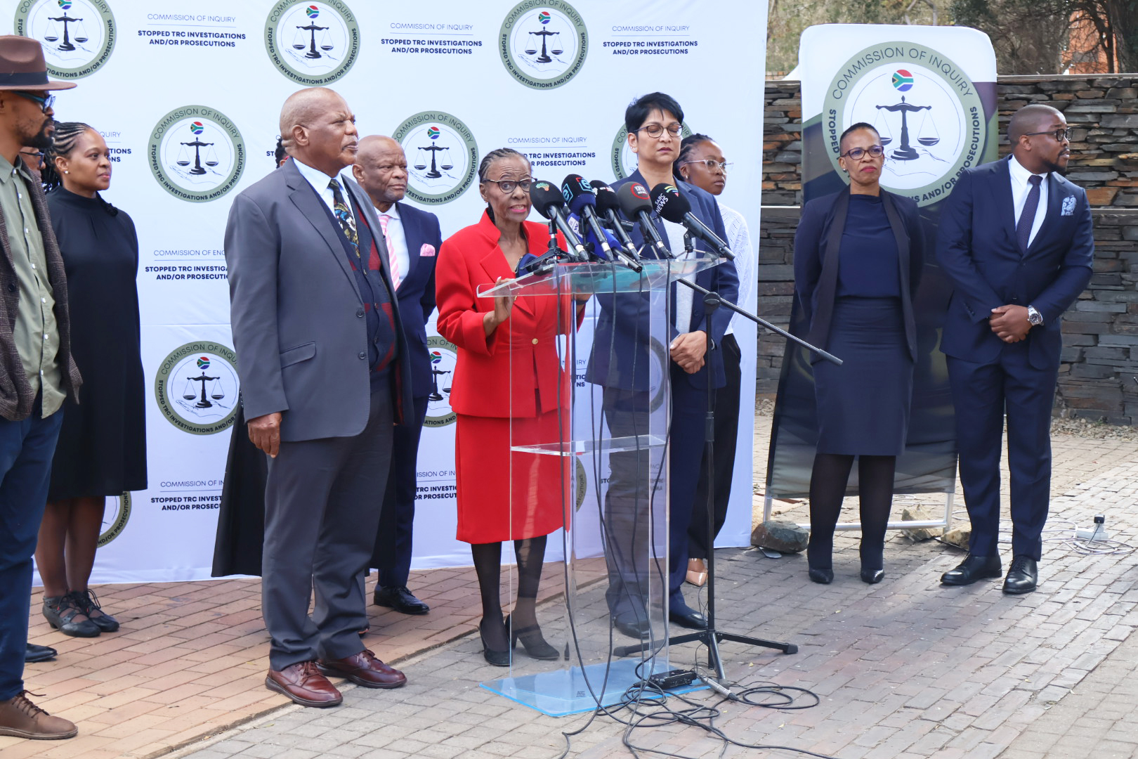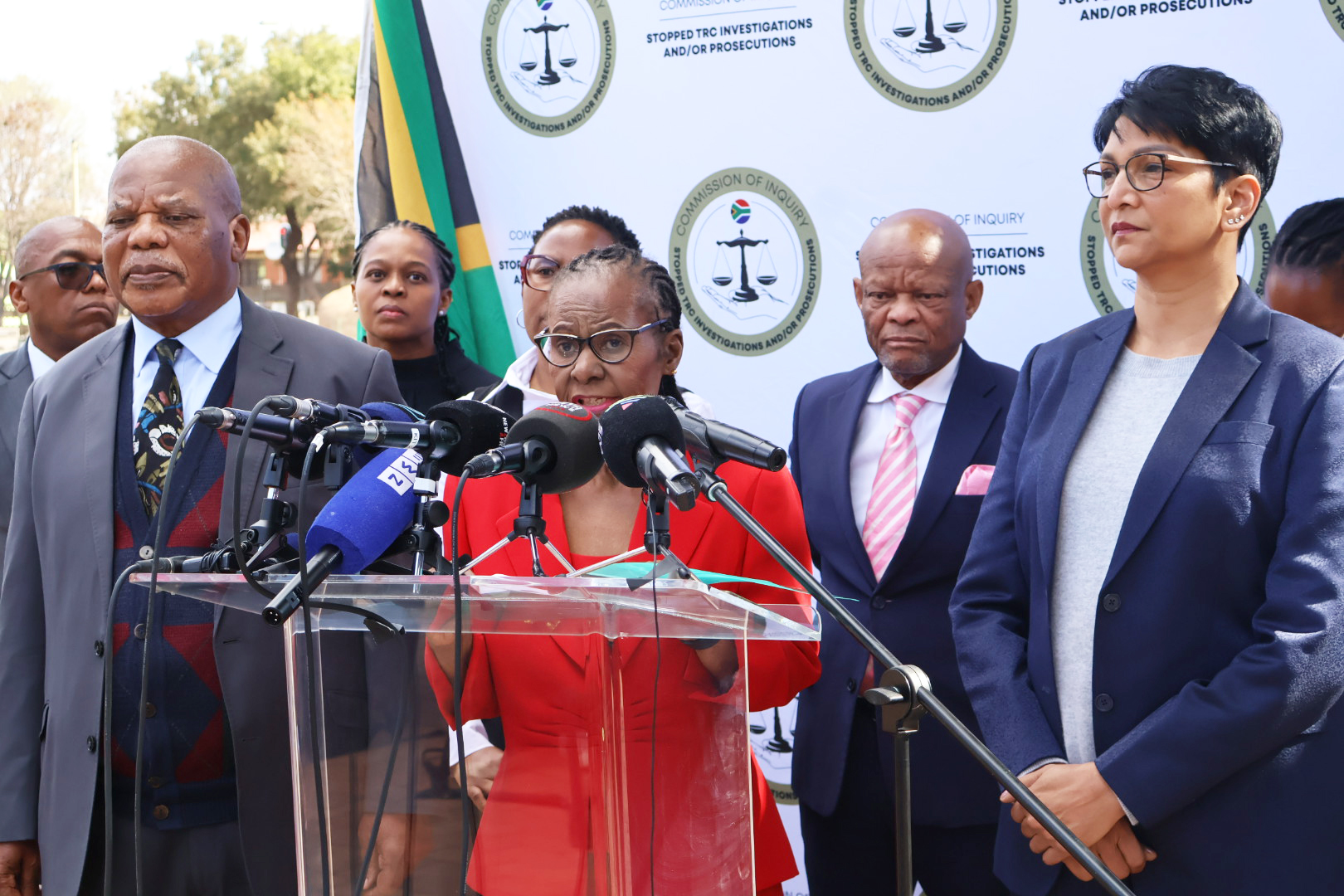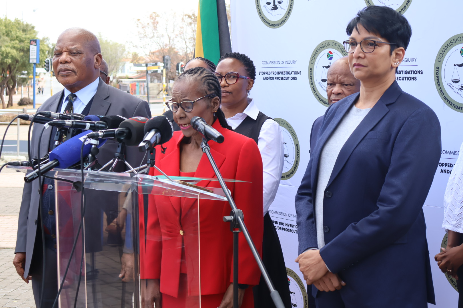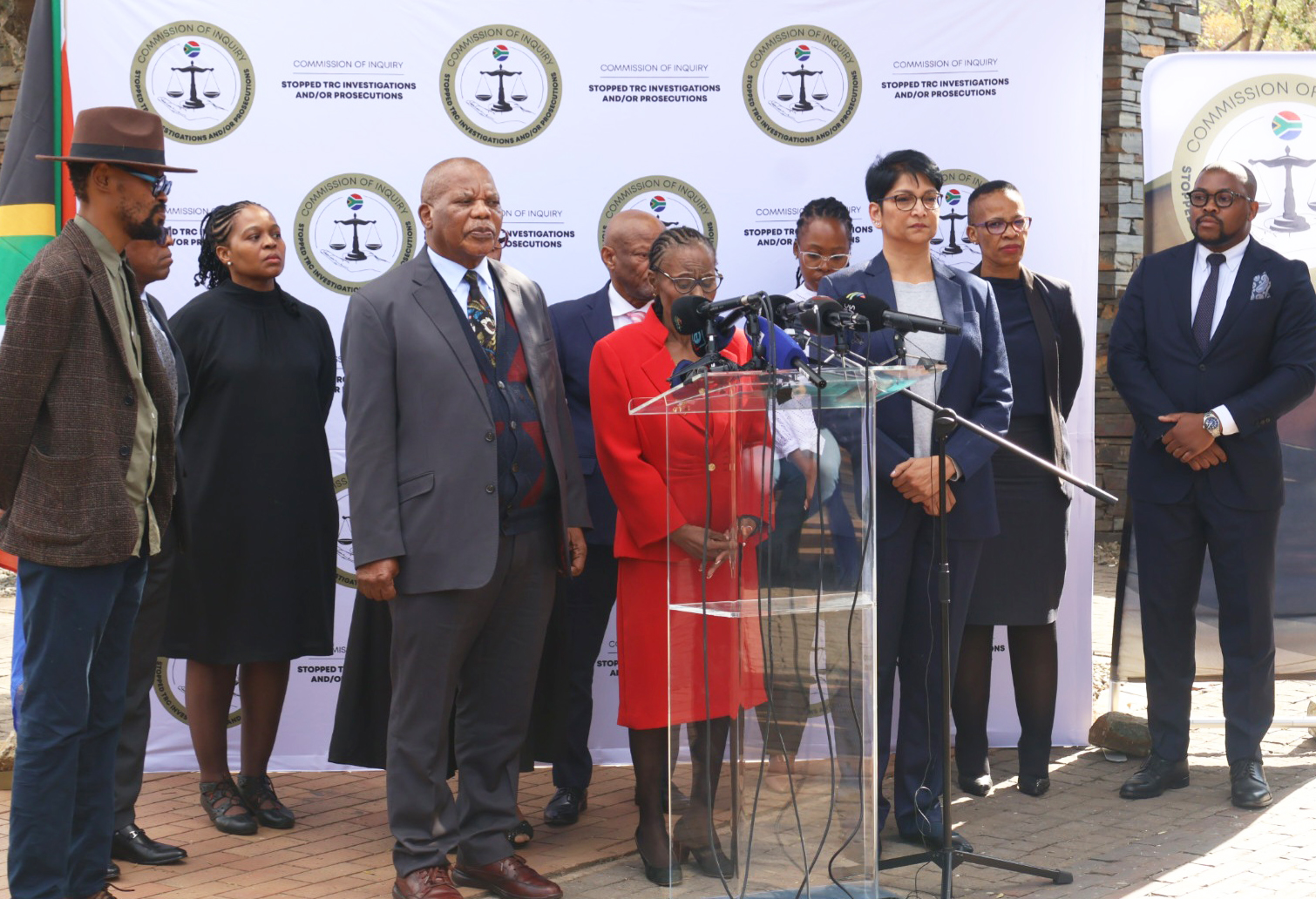• The Chairperson of the TRC Cases Inquiry Justice Sisi Khampepe, Commissioners Andrea Gabriel SC, retired Judge President Frans Kgomo, Secretary Adv Mamokete Thokoa and members of the Legal team at the Hector Petersen Memorial in Soweto for the first media briefing of the Inquiry, 19 August 2025.The Chairperson of the TRC Cases Inquiry Justice Sisi Khampepe, Commissioners Andrea Gabriel SC, retired Judge President Frans Kgomo, Secretary Adv Mamokete Thokoa and members of the Legal team at the Hector Petersen Memorial in Soweto for the first media briefing of the Inquiry, 19 August 2025.